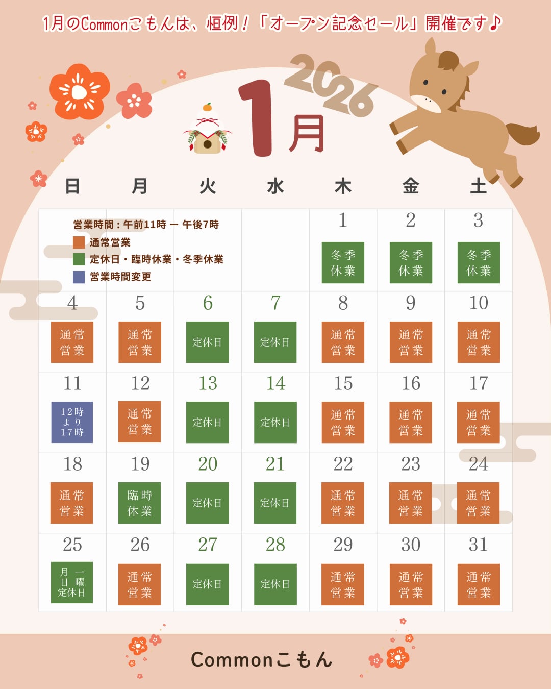 1月の営業日カレンダー