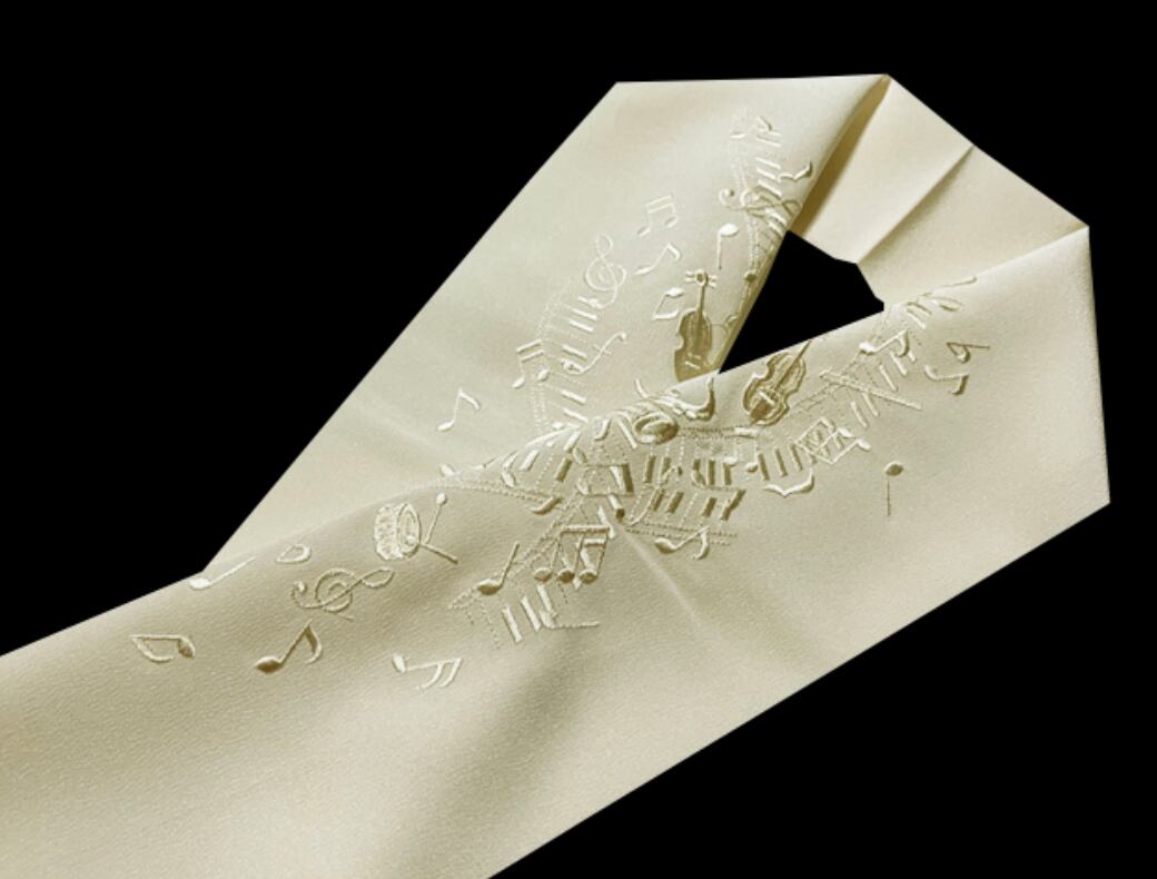 刺繍半衿 オフホワイト 鍵盤に音符と楽器
